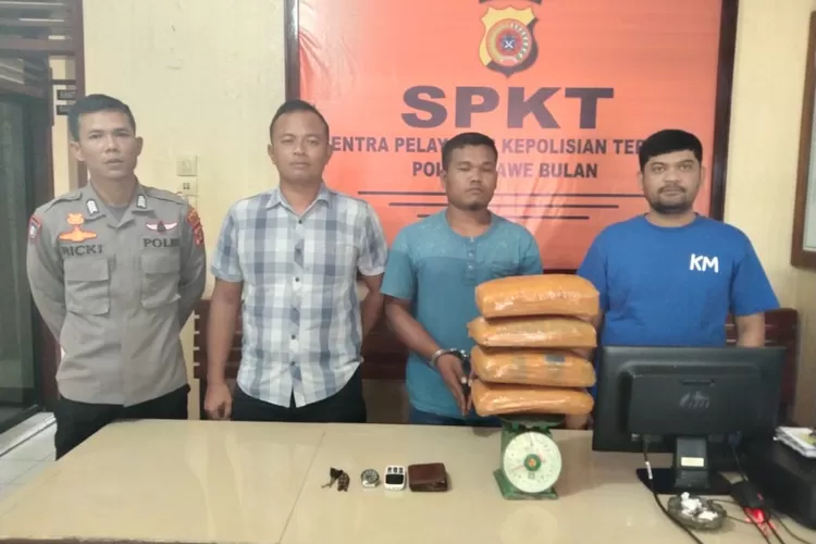 Selanjutnya anggota kita mendatangi laki-laki yang tersebut, setelah mendekat, laki-laki tersebut berusaha untuk melarikan diri dan oleh anggota langsung melakukan penangkapan dan ditemukan Narkotika jenis ganja sebanyak Empat bal yang dibalut dengan isolasi warna kuning di dalam bagasi sepeda motornya. Selanjutnya tersangka. IS (26) tahun dan barang bukti lain di bawa ke Polsek Lawe Bulan guna pemeriksaan lebih lanjut sebut Ipda Djuliar Yousnaidi. (sd)
