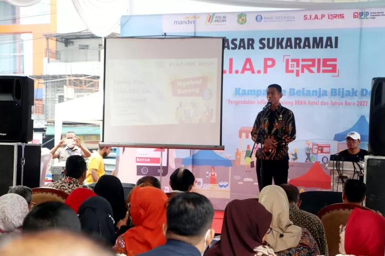 Harapan ini disampaikan Suwarno pada kegiatan Kampanye Belanja Bijak dengan QRIS. Pengendalian Inflasi Menjelang HBKN Natal dan Tahun Baru 2023serta Edukasi Keuangan Digital yang diadakan di Pasar Sukaramai, Kamis (10/11/2022).