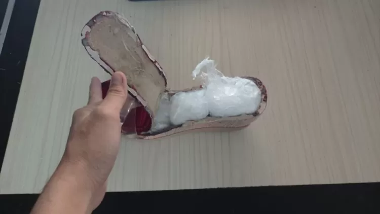 Oleh petugas AVSEC, keduanya langsung diamankan dan dibawa ke ruang pemeriksaan. Berdasarkan hasil interogasi petugas, ditemukan sabu seberat 1,3 Kg yang dibungkus dalam plastik putih disembunyikan didalam sandal yang telah dimodifikasi khusus.