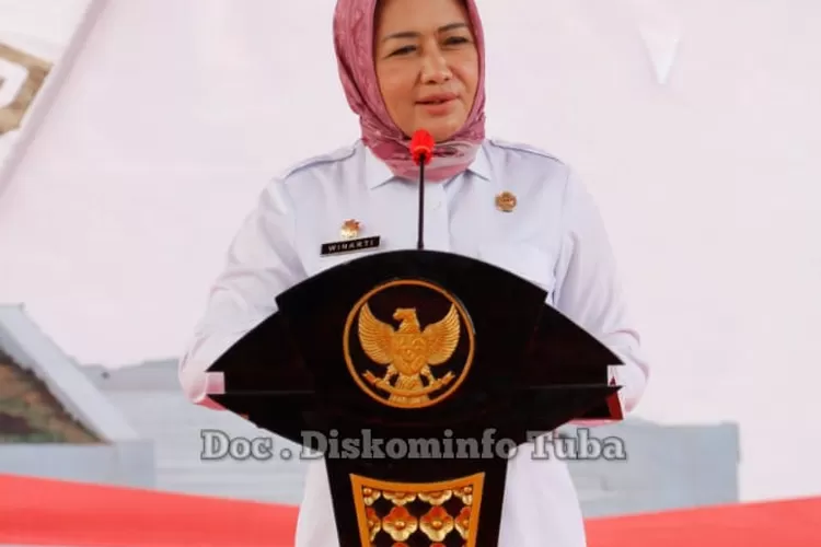 Bupati Winarti didampingi oleh, Dandim 0426 Tulang Bawang, Pejabat tinggi pratama di lingkup Pemerintah kabupaten Tulang Bawang,Camat Banjar Margo dan Kepala Kampung se- Kecamatan Banjar Margo Kabupaten Tulang Bawang.