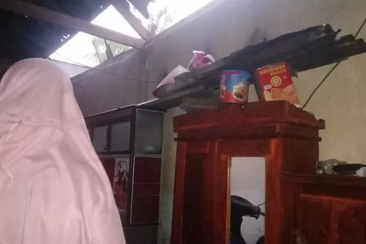 Akibat angin kencang itu, sejumlah atap dari asbes dapur rumah Satiri jebol.