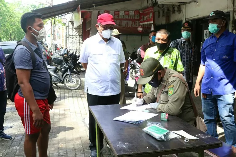 Guna memastikan warganya mengenakan masker, Pelaksana Tugas (Plt) Wali Kota Medan Ir H Akhyar Nasution MSi terus memantau razia masker yang dilaksanakan Tim Gabungan Pemko Medan dibantu Satuan Polisi Pamong Praja (Satpol PP) Provinsi Sumatera Utara di bilangan Jalan Setia Budi, Kecamatan Medan Sunggal. Jum'at (8/5).