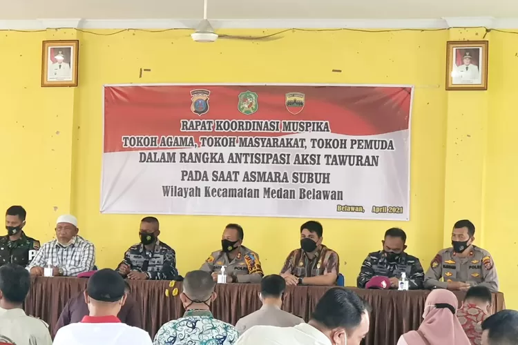 BELAWANrealitasonline.id | Guna mencegah dan mengantisipasi terjadinya tawuran susulan Polres Pelabuhan Belawan melakukan rapat koordinasi bersama  Muspika, tokoh agama tokoh masyarakat, dan tokoh pemuda di Ula Kantor Kecamatan Medan Belawan, Jumat (16/4/2021).