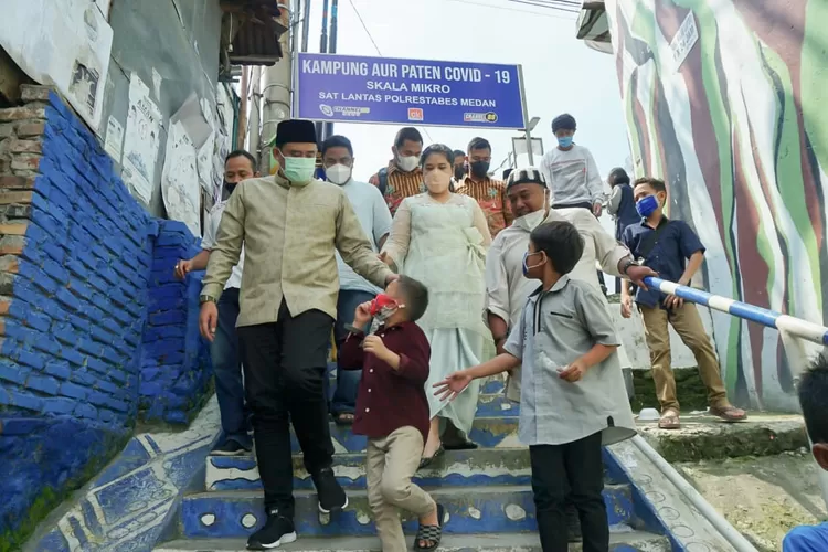 MEDAN - realitasonline.id | Begitu mendengar ada ratusan rumah warga di Jalan Brigjen Katamso, Kelurahan Aur, Kecamatan Medan Maimun terendam air karena meluapnya Sungai Deli pada Hari Raya Idul Fitri 1 Syawal 1442 H, Wali Kota Medan Bobby Nasution bersama Ketua TP PKK Kota Medan Kahiyang Ayu langsung turun meninjau lokasi banjir, Kamis (13/5).
