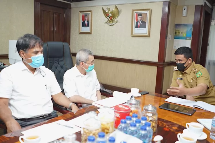 MEDANrealitasonline.id | Wali Kota Medan Muhammad Bobby Afif Nasution SE MM melakukan pertemuan dengan Balai Wilayah Sungai (BWS) Sumatera II di Ruang Khusus Wali Kota, Kantor Wali Kota, Senin (17/5). Pertemuan ini merupakan koordinasi Pemko Medan dan BWS guna membahas cara dan solusi untuk mengatasi permasalahan banjir yang terjadi di sejumlah titik di Kota Medan.