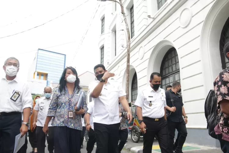 MEDAN - realitasonline.id | Wali Kota Medan, Muhammad Bobby Afif Nasution SE MM bersama Dirjen Cipta Karya Kementerian PUPR, Ir Diana Kusumastuti MT meninjau kawasan kota lama Kesawan, Rabu (19/5/2021).