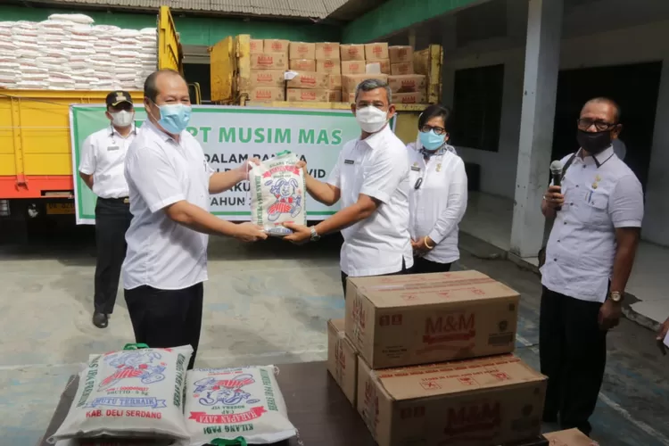 CSR berupa beras dan minyak makan ini diserahkan langsung oleh Manager PT. Musim Mas, Yuandy kepada Wali Kota Medan, Bobby Nasution diwakili Sekda Kota Medan, Wiriya Alrahman di gudang Dinas Perdagangan Kota Medan, jalan. STM, Kec. Medan Amplas, (21/7).