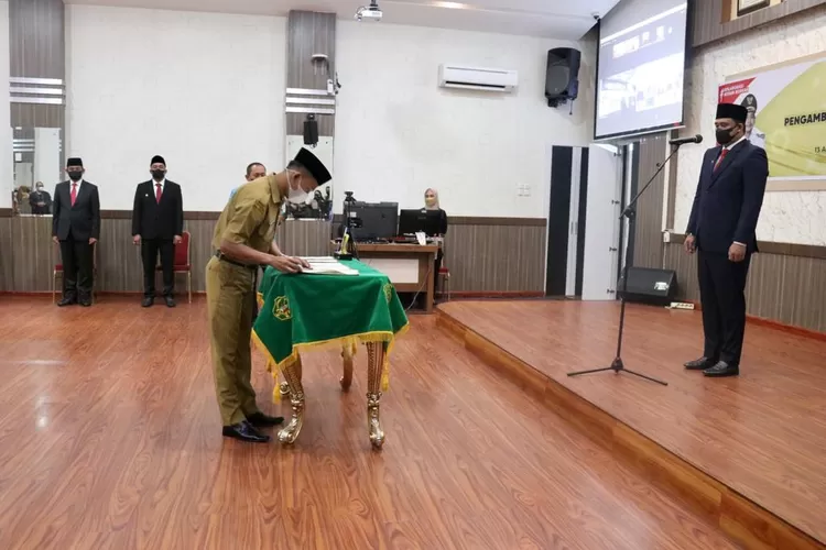 MEDAN - realitasonline.id | Wali Kota Medan, Bobby Nasution mengambil sumpah dan janji 197 ASN Pemko Medan secara hibrid (luring dan daring), Jumat (13/8/2021) di Ruang Rapat III, kantor wali kota. Mereka yang diambil sumpah ini merupakan CPNS pengangkatan 2019 yang ditempatkan di dinas pendidikan, dinas kesehatan, kecamatan, serta BKDPSDM Medan.