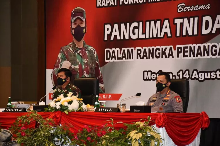 Hal itu disampaikan Panglima TNI, Marsekal TNI Hadi Tjahjanto, SIP, didampingi Kapolri, Jenderal Pol Listyo Sigit Prabowo saat memimpin Rapat Koordinasi Percepatan Penanganan Covid-19 Provinsi Sumut dengan unsur Forkopimda di Hotel Santika Medan, Sabtu (14/8/2021).