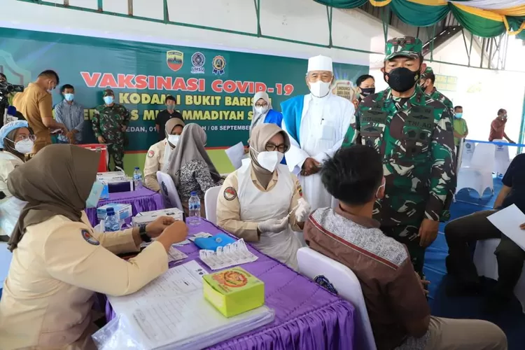 MEDAN - realitasonline.id | Dalam rangka membantu pemerintah menekan laju penyebaran Covid-19 di Sumatera Utara, Kodam I/Bukit Barisan telah bekerjasama dengan pihak Rektor Universitas Muhammadiyah Sumatera Utara (UMSU) dengan menggelar Vaksinasi Massal bagi para Mahasiswa.