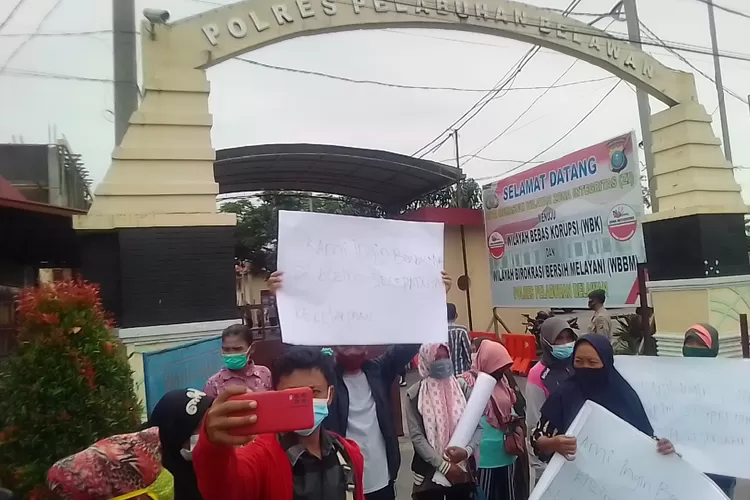 Puluhan Warga Demo Mapolres Pelabuhan Belawan Minta 2 Orang Warga Dibebaskan