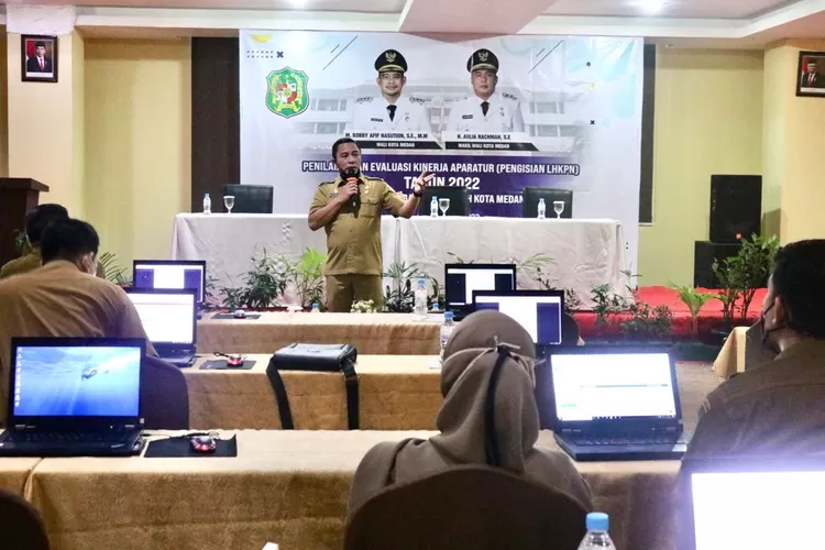 MEDAN - realitasonline.id | Pemko Medan melalui Badan Kepegawaian Daerah dan Pengembangan Sumber Daya Manusia (BKDPSDM) Kota Medan melaksanakan kegiatan Penilaian dan Evaluasi Kerja Pengisian Laporan Harta Kekayaan Penyelenggara Negara (LHKPN) Tahun 2021, Senin (7/2/2022) di Hotel Grand Kanaya Medan. Dalam kegiatan ini, BKDPSDM menyiapkan tempat, fasilitas, dan tenaga pendamping untuk membantu pejabat di lingkungan Pemko Medan dalam pengisian LKHPN.