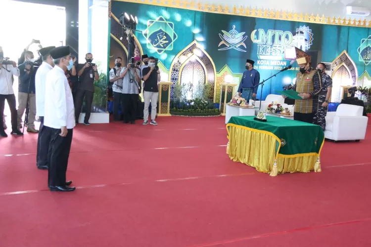 MEDAN - realitasonline.id| Wali Kota Medan Bobby Nasution secara resmi melantik Dewan Pengawas dan Dewan Hakim Musahbaqah Tilawatil Qur'an (MTQ) ke 55 tingkat Kota Medan tahun 2022 di Gedung OB Sya'af Lantamal I Belawan, Jumat (18/2/2022).