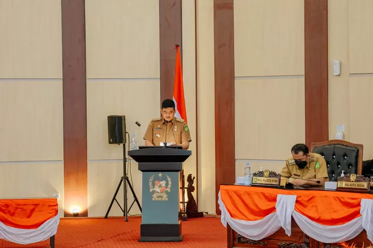 Demikian disampaikan Wali Kota Medan Bobby Nasution dalam Rapat Paripurna Penyampaian Nota Pengantar Kepala Daerah Terhadap Ranperda Kota Medan tentang Pertanggungjawaban Pelaksanaan APBD Tahun 2021 di Gedung DPRD Medan, Senin (30/5). Selain Wakil Wali Kota H Aulia Rachman, Sekda Kota Medan Wiriya Alrahman, para ketua dan anggota DPRD, sejumlah pimpinan OPD serta camat se-Kota Medan juga turut hadir dalam rapat tersebut.