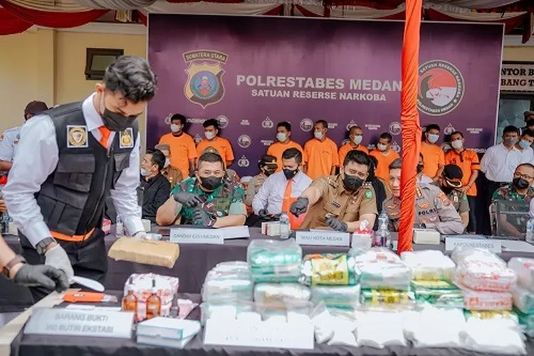 MEDAN - realitasonline.id| Apresiasi disampaikan Wali Kota Medan Bobby Nasution terhadap Polrestabes Medan beserta seluruh jajarannya atas keberhasilan mengungkapkan kasus narkoba di sejumlah lokasi. Selain menangkap para pelakunya, juga berhasil mengamankan barang buktinya. Diharapkan, narkoba harus bisa diberantas dari ibukota Provinsi Sumatera Utara ini.
