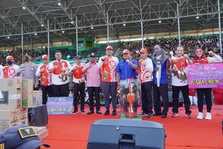 Setelah berlangsung selama sepekan penuh, Wali Kota Medan Bobby Nasution didampingi Bupati Serdangbedagai (Sergai) H Darma Wijaya, Bupati Batubara Ir H Zahir MAP serta unsur Forkopimda Kota Medan menutup Pekan Olahraga Kota (Porkot) Medan ke XII tahun 2022 di Stadion Teladan, Medan, Sabtu (13/8/2022).