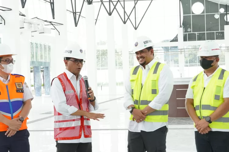 MEDAN - realitasonline.id| Wali Kota Medan Bobby Nasution mendampingi Menteri Perhubungan (Menhub) Budi Karya Sumadi meninjau Terminal Tipe A Amplas, Sabtu (24/9/2022). Peninjauan dilakukan untuk melihat progress dari revitalisasi yang tengah dilakukan di terminal yang memiliki total lahan seluas sekitar 20.162 M2 tersebut. Revitalisasi direncanakan rampung pada November 2022 dan akan dioperasikan Desember mendatang.