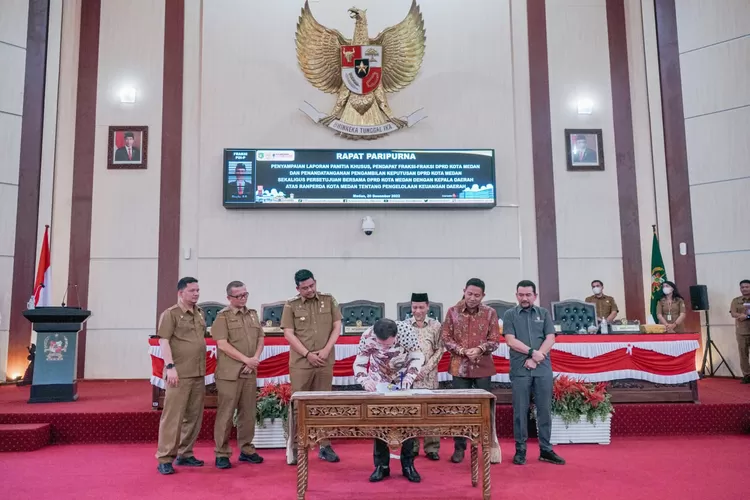 MEDAN realitasonline.id | Saat menghadiri rapat paripurna dalam rangka Penyampaian Laporan Hasil Pembahasan Pendapat Akhir Fraksi-Fraksi dan Penandatanganan atau Pengambilan Keputusan Sekaligus Persetujuan Bersama DPRD atas Rancangan Peraturan Daerah (Ranperda) Kota Medan tentang Pengelolaan Keuangan Daerah, Wali Kota Medan Bobby Nasution mengatakan, jika keuangan daerah dalam setiap tahun dijabarkan dalam bentuk APBD memiliki kedudukan dan fungsi yang sangat pokok untuk menyelenggarakan berbagai urusan pemerintahan daerah.