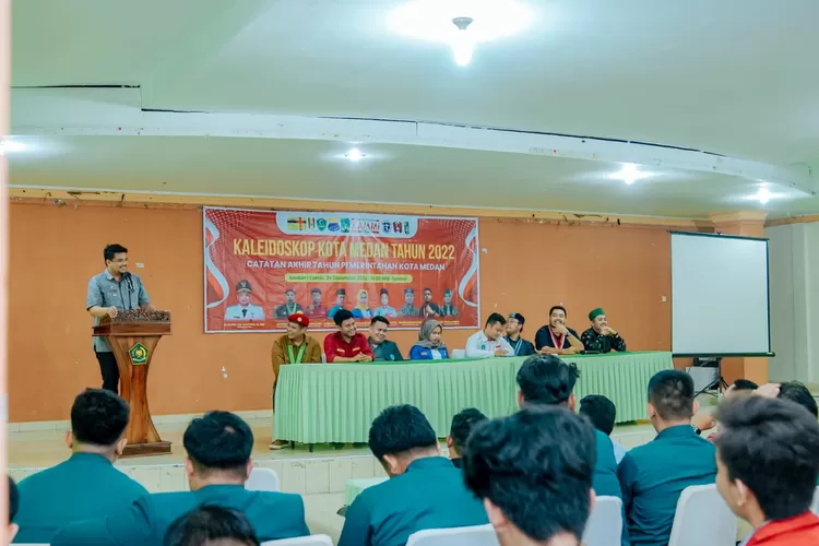 MEDAN - realitasonline.id | HMI Kota Medan mendukung program Wali Kota Medan Bobby Nasution dalam pembenahan kawasan heritage dan pemberdayaan UMKM yang ada di kota Medan. Dukungan tersebut disampaikan Ketua HMI Medan Ridho Fahrezy yang tergabung dalam Cipayung Plus Kota Medan dalam acara Kaleidoskop Kota Medan Tahun 2022 "Catatan Akhir Tahun Pemerintahan Kota Medan" yang diadakan di Asrama Haji Medan, Kamis (29/12).