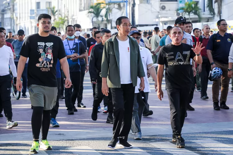 Dengan menggunakan sepeda, Presiden Jokowi didampingi Gubernur Sumut Edy Rahmayadi dan Wali Kota Medan Bobby Nasution berolahraga mengelilingi area CFD. Selanjutnya Presiden Jokowi bersama Edy Rahmayadi dan Bobby Nasution serta unsur Forkopimda Sumut berjalan kaki dari depan stasiun Kereta Api ke arah persimpangan Gedung Lonsum kemudian menuju ke Pos Blog.