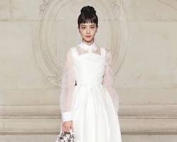 Jisoo tampil anggun dan menawan dalam balutan gaun putih panjang dari Dior. Gaun ini memiliki detail ruffle di bagian dada dan rok yang membuatnya semakin flowy. Jisoo melengkapi penampilannya dengan clutch dan heels berwarna putih.
