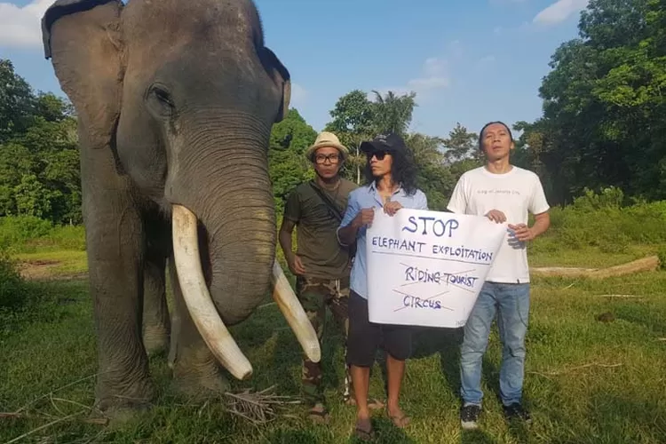 "Kali ini bukan barisan manusia yang hendak mereka hibur, adalah dalam misi mengkampanyekan gerakan anti eksploitasi satwa liar dan sikap menolak menunggangi gajah karena pada dasarnya itu membahayakan gajah," kata Sugeng.
