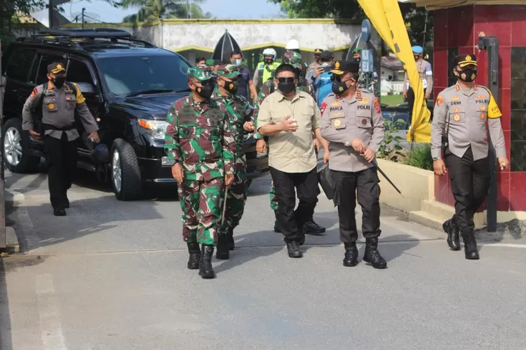 LABUHANBATU - Realitasonline.id | Pangdam I/BB Mayjen TNI Hassanudin SIP, MM bersama Kapoldasu Irjen Pol Drs RZ Panca Putra Simanjuntak MSi, memimpin apel kesiapan patroli skala besar TNI-Polri di Polres Labuhanbatu Jln MH Thamrin Rantauprapat, Kecamatan Rantau Utara, Kabupaten Labuhanbatu, Jumat (30/7/2021).