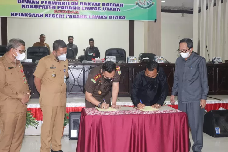 Dewan Perwakilan Rakyat Daerah (DPRD) kabupaten Padang Lawas Utara (Paluta) dan Kejaksaan Negeri (Kejari) kabupaten Paluta melakukan penandatanganan nota kesepakatan bersama atau memorandum of Understanding (MOU) penanganan masalah hukum bidang perdata dan Tata Usaha Negara (Datun), Senin (18/4/2022).