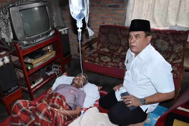 MADINA - realitasonline.id | Bupati Mandailing Natal (Madina) HM Jafar Sukhairi Nasution menjenguk Suhibban (57 Tahun) penderita penyakit tumor kurang mampu di Lingkungan II, Kelurahan Sipolu-polu, Kecamatan Panyabungan Madina, Rabu (23/11/2022).