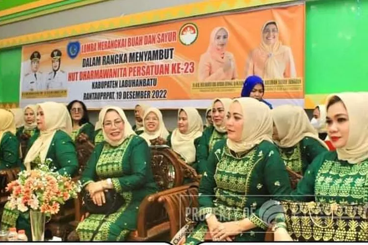 LABUSEL - realitasonline.id | Setelah melaksanakan anjangsana, Dharma Wanita Persatuan (DWP) Kabupaten Labuhanbatu menggelar lomba merangkai buah dan sayur, dalam rangka memeriahkan HUT Ke-23 DWP Tahun 2022, di Ruang Data dan Karya Kantor Bupati, Kecamatan Rantau Selatan, Senin (19/12/2022).