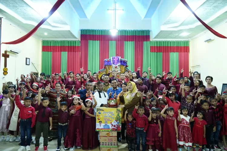 LABUSEL – realitasonline.id | Guna mewujudkan kepedulian dan toleransi antar umat beragama, Bunda PAUD Kabupaten Labuhanbatu Selatan (Labusel), Ny.Hj Darni Hatna Edimin meriahkan perayaan Natal Anak sekolah minggu (ASM) di sejumlah Gereja di labuhanbatu selatan.