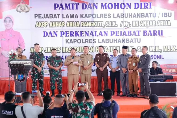 Mewakili pimpinan forkopimda Labuhanbatu dan Labuhanbatu Utara, Erik Adtrada Ritonga mengucapkan selamat jalan dan selamat bertugas di tempat yang baru kepada AKBP Anhar Arlia Rangkuti, semakin sukses dalam berkarir.