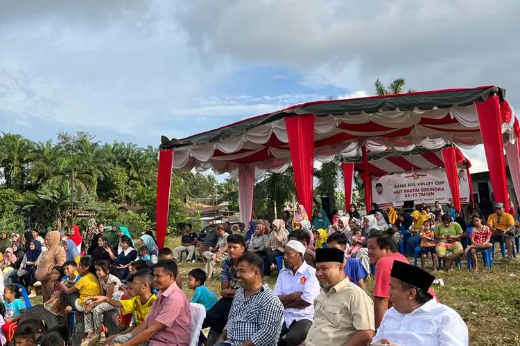 LANGKAT - realitasonline.id| Gerindra dan masyarakat di Perlis Langkat menggelar Tabligh Akbar, Bakti Sosial dan turnamen Bola Voli menyambut Hari Ulang Tahun (HUT) Gerindra ke 15.