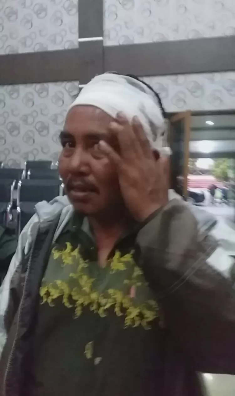 Ketua BPD Daulu, Jolisan Sembiring korban tindakan kekerasan di pos pengutipan restribusi ke DTW Pemandian Air Panas Semangat Gunung.(Realitasonline.id/SG)